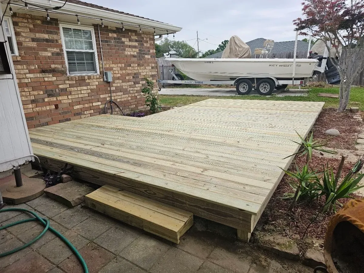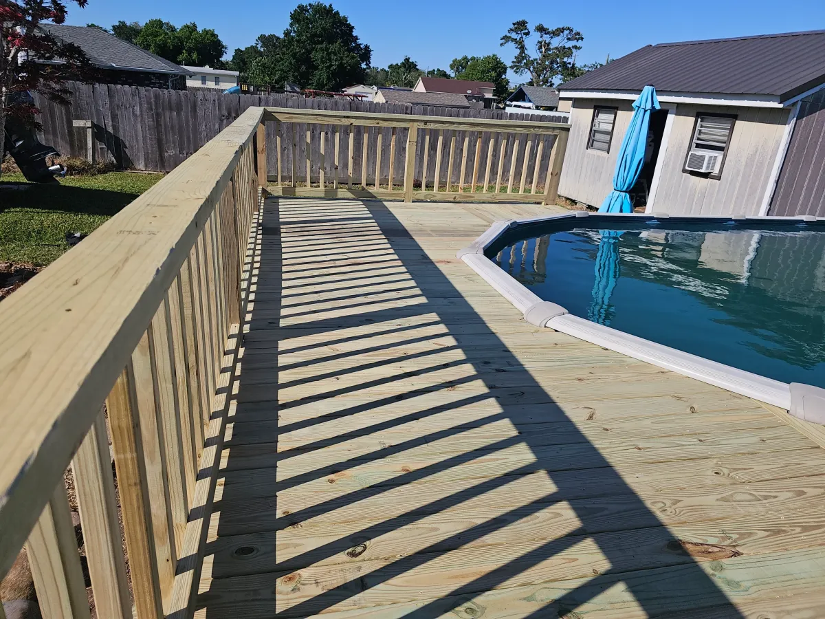 Planning & Material Selection: Choose from durable materials like pressure-treated wood, cedar, or composite decking. We guide you through the options that best fit Louisiana’s humid climate and your desired maintenance level.